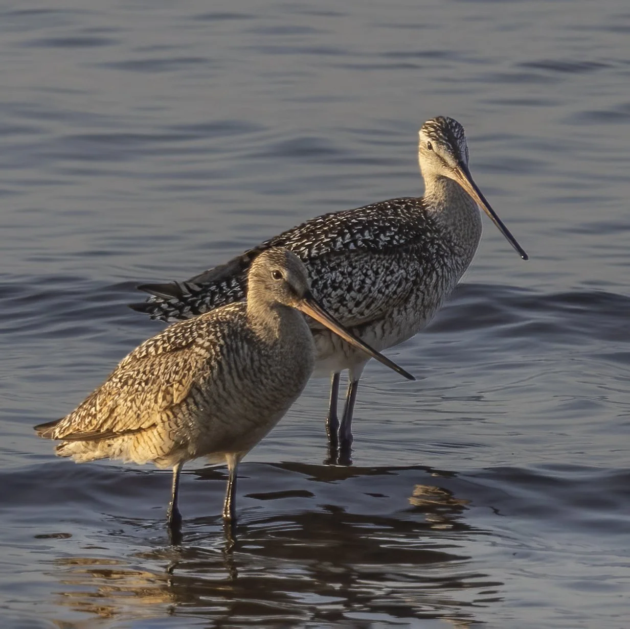 Marbled Godwits occasionally stopover to refuel on their way back north and may join other shorebirds in flocks.