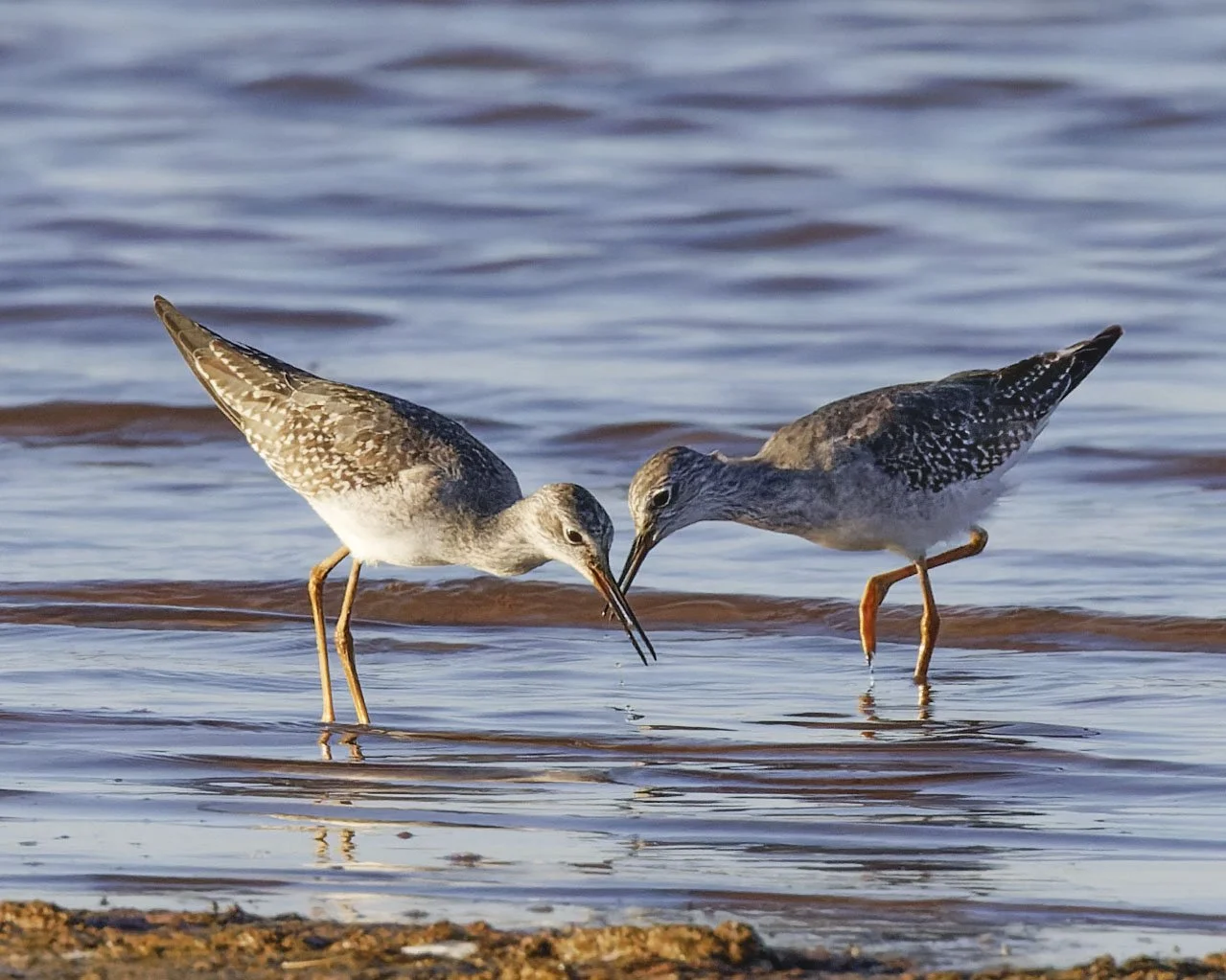 Lesser Yellowlegs are graceful feeders preferring the shallows of lakes, rivers and streams. They are seen with Greater Yellowlegs with similar markings as well as other shorebirds.