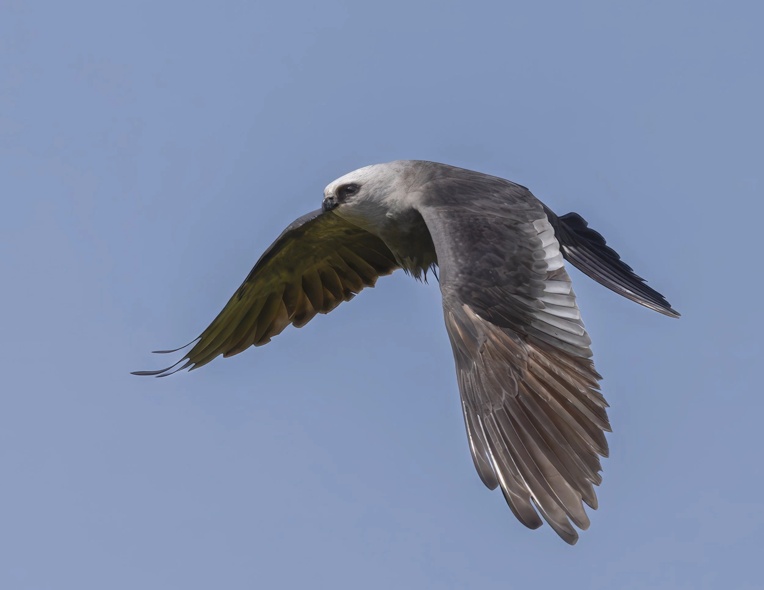 Mississippi Kites favor nesting sites in Oklahoma and neighboring states and return to South America as far south as Argentina in the fall. They often rest on telephone lines and sore high to catch small prey including small birds.